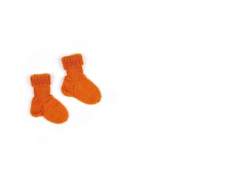 baby socks/chaussettes bébé/Baby Söckchen cognac 70% superbaby alpaca/30% extra fine merino stocking stitch /point jersey/glattrechts 0-4 month/4-8 month/8-12 month