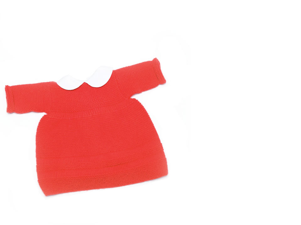 dress/ robe/ Kleidchen orange 70% superbaby alpaca/ 30% extra fine merino garter stitch/ point mousse/ Krausrechts 0-4 month/ 4-8 month / 8-12 month