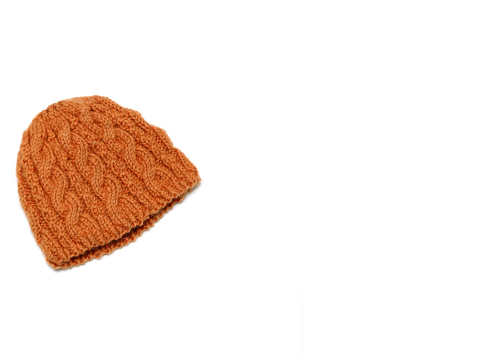 boy’s hat/ bonnet garçon/ Jungen Mützchen cognac 70% superbaby alpaca/ 30% extra fine merino cable stitch/ point torsade/ Zopfmuster 0-4 month/ 4-8 month/ 8-12 month/ 12-18 month/ 18-24 month