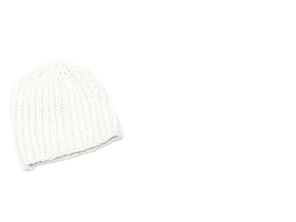 16.4 Baby boy’s hat boy’s hat/ bonnet garçon/ Jungen Mützchenoff-white/ blanc cassé/ Naturweiss70% superbaby alpaca/ 30% extra fine merinohalf brioche stitch/ côte anglaise/ Halb Patent0-4 month/ 4-8 month/ 8-12 month/ 12-18 month/ 18-24 month