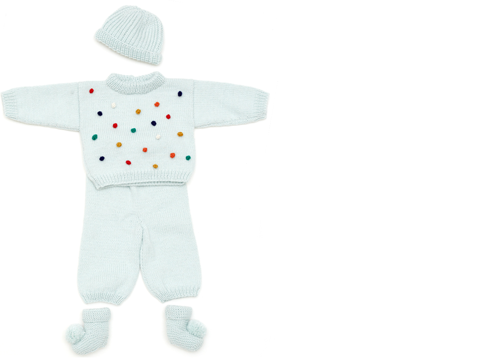 pullover/ pullover/ Pullover pale blue with multicolor dots détails trousers/ pantalon / Höschen pale bluedétail booties/ bottines/ Schühchen pale blue détail hat/ bonnet/ Mützepale blue détail